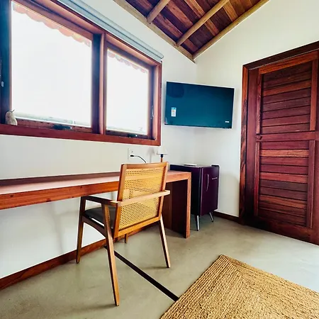 The rooms at the Casa Calango Fortim include an iron and climate control, as well as media facilities like a flat-screen TV with satellite channels. They are appointed with a writing desk, and also feature a mini fridge bar. A separate toilet and a shower, along with a hair dryer and bath sheets, are provided in the bathrooms.
